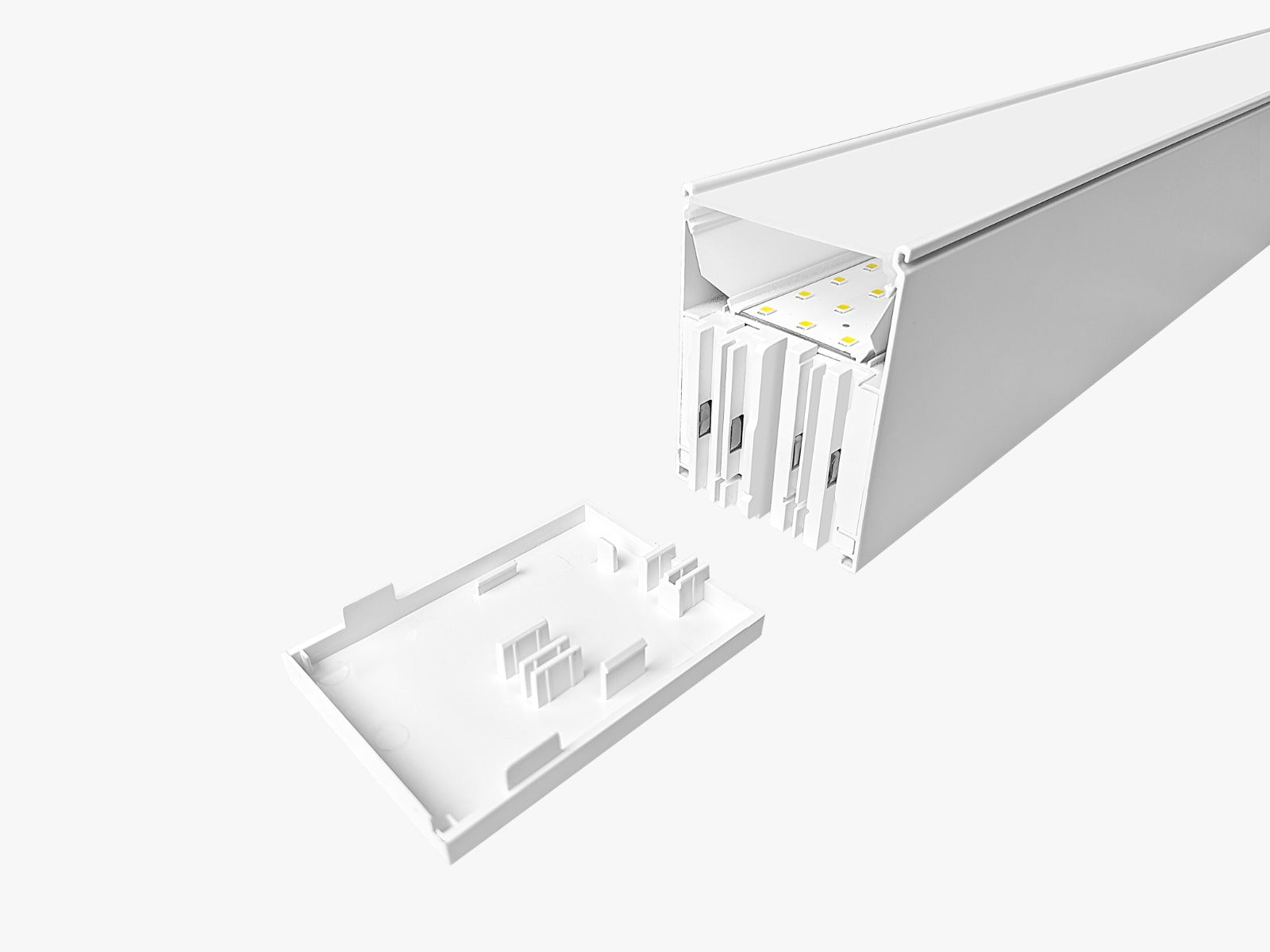 Ova linearna LED rasvjeta pruža snažno, ujednačeno svjetlo bez treperenja, čime je idealna za urede, prodajne prostore, industrijske objekte i kućne interijere.