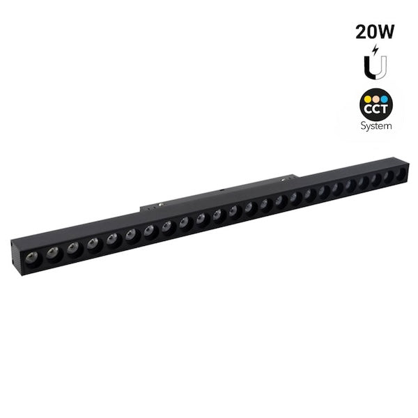 Magnetna linearna svjetiljka 20W ima 24 pojedinačna LED modula koji pružaju usmjereno svjetlo pod kutem od 24°, s niskim indeksom odsjaja UGR18 za maksimalnu vizualnu udobnost.