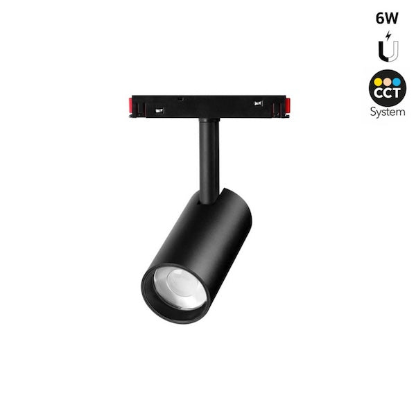 Ovaj LED reflektor za magnetne šine opremljen je CCT tehnologijom, koja omogućuje podešavanje temperature svjetla od tople bijele (2700K) do hladne bijele (6500K).