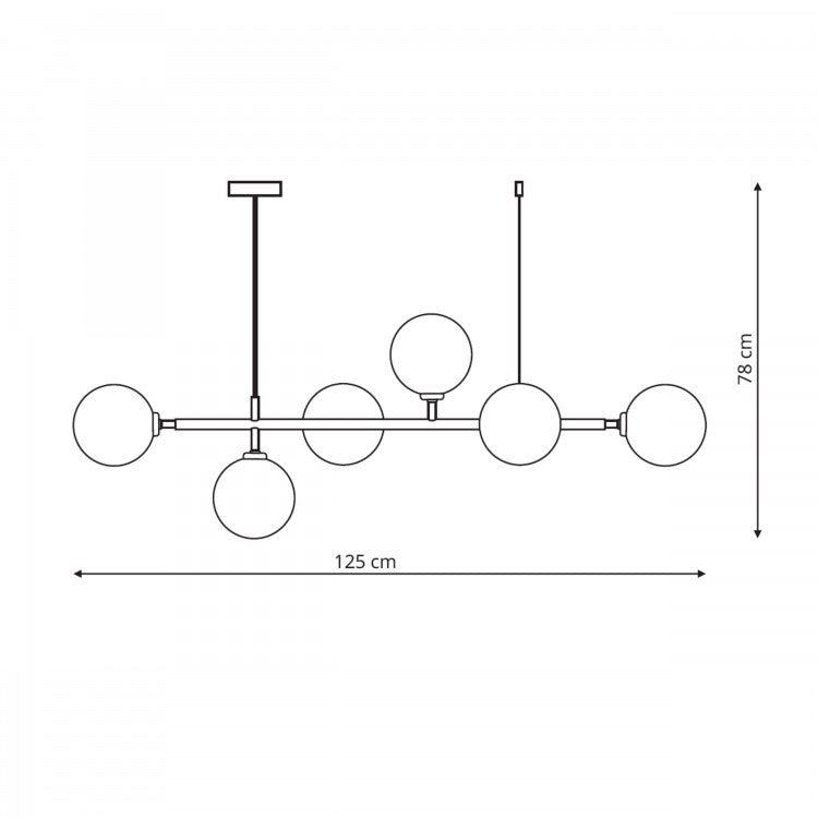 Šest mliječnih staklenih kugli ravnomjerno raspoređenih na zlatnoj konstrukciji daje obilje svjetla, ali bez odsjaja – mekano, ugodno i toplo svjetlo koje potiče osjećaj udobnosti i mira.